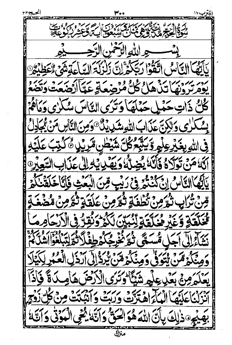 Surah Al-Hajj highlights the importance of worship, sacrifice, and obedience to Allah. It reminds believers of the reality of the Hereafter and the significance of sincerity in acts of worship. Reciting this Surah strengthens faith and awareness of accountability.